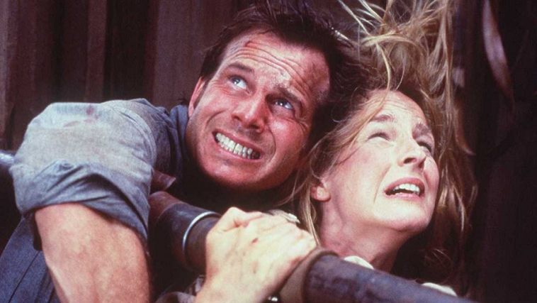 I saw this movie in the theater when I was 7, so obviously it was the greatest thing of all time. The special effects at the time were amazing. We have a stretch where the White House, most of LA, and NYC are destroyed by aliens earning this movie an Oscar. We have Jeff Goldblum at his Goldblumiest, teamming up with Will Smith letting us all know the Willenium is beginning a barrage of one liners: “that’s what I call a close encounter”, “welcome to Earth”, and my personal favorite “tell them I hit you” to a dude who dwarfed him. This duo masterfully combined brains, brawn, wit, and charm to upload a computer virus into the alien force field system (LITERALLY AS I TYPE THIS I just connected this plan to the climax War Of The Worlds where the invading aliens died from viral germs). Bill Pullman, as President Whitmore, gives an all-time great Presidential speech, and Randy Quaid (previously dismissed as a crazy alien fanatic) flies kamikaze-style into an alien ship (probing them in a way he was probed?). This movie has little to no flaws, a lot of Adam Baldwin (Jaynestown is one of the best episodes of TV ever), and is deserving of its spot on the Disaster Movie Mt. Rushmore.